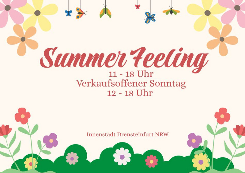 Das Summer Feeling gehört seit vielen Jahren zu den großen Events in der Drensteinfurter Innenstadt. Am Sonntag erwartet euch ein buntes Programm mit Markt- und Vereinsständen, Aktionen für Kinder, Maibaumaufstellen und einem verkaufsoffenen Sonntag. Mitten im Geschehen sind wir mit unserem Coffee-Bike dabei und sorgen für entspannte Genussmomente beim Schlendern, Verweilen und Genießen.