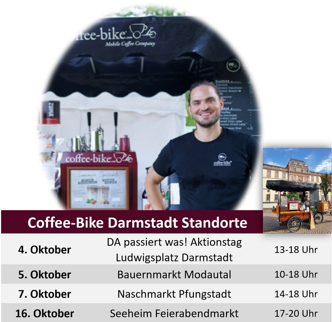 Mobil, flexibel und autark – buche das Coffee-Bike Darmstadt für deine Veranstaltung. Das Kaffeecatering der Kaffeebar auf drei Rädern ist das Highlight auf jedem Event. Genieße die leckeren Kaffeespezialitäten eines professionellen Baristas.